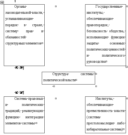 В соответствии с основными функциями можно выделить и основные элементы, составляющие структуры системы власти: